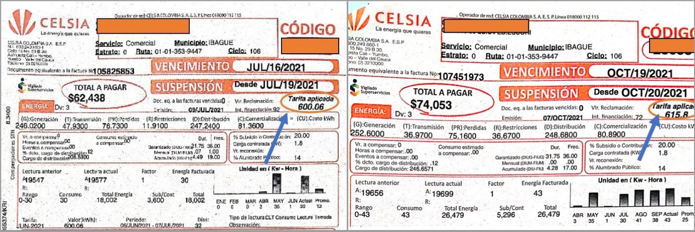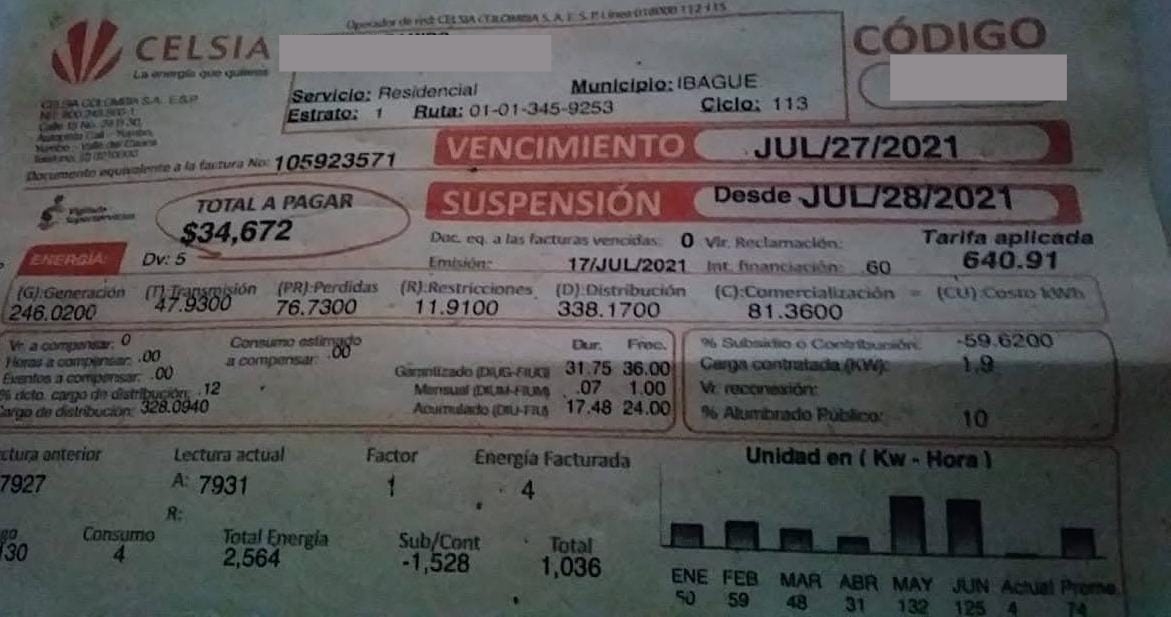 Sin embargo, El Cronista.co en las últimas horas recibió una gran cantidad de denuncias que contradicen la información de Celsia. Con fotografías o pantallazos de sus recibos, los clientes en el Tolima mostraron que en todos los estratos y en repetidos casos, el precio del kilovatio es más caro de lo que dice la empresa.