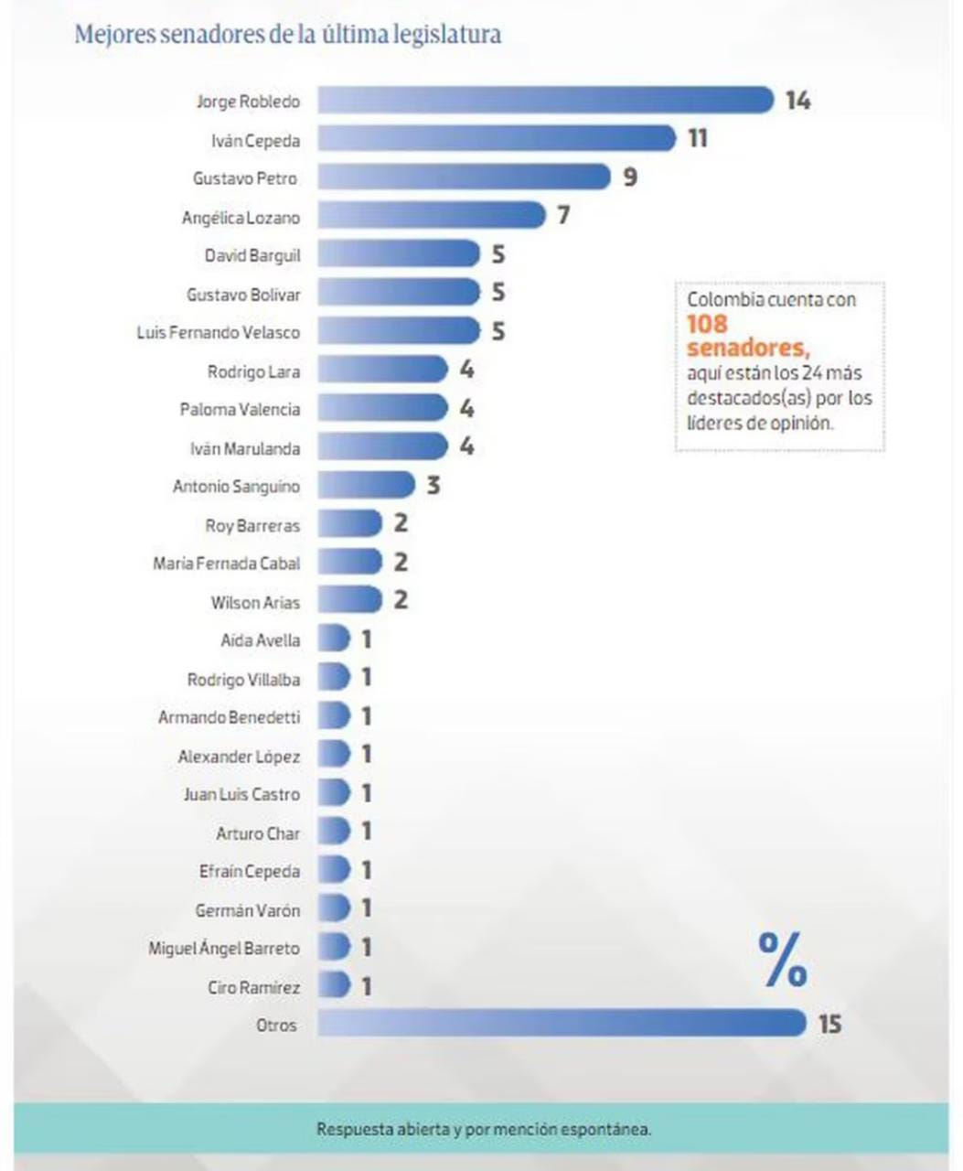 A Robledo, como mejores senadores, le siguieron Iván Cepeda, Gustavo Petro, Angélica Lozano y David Barguil.
